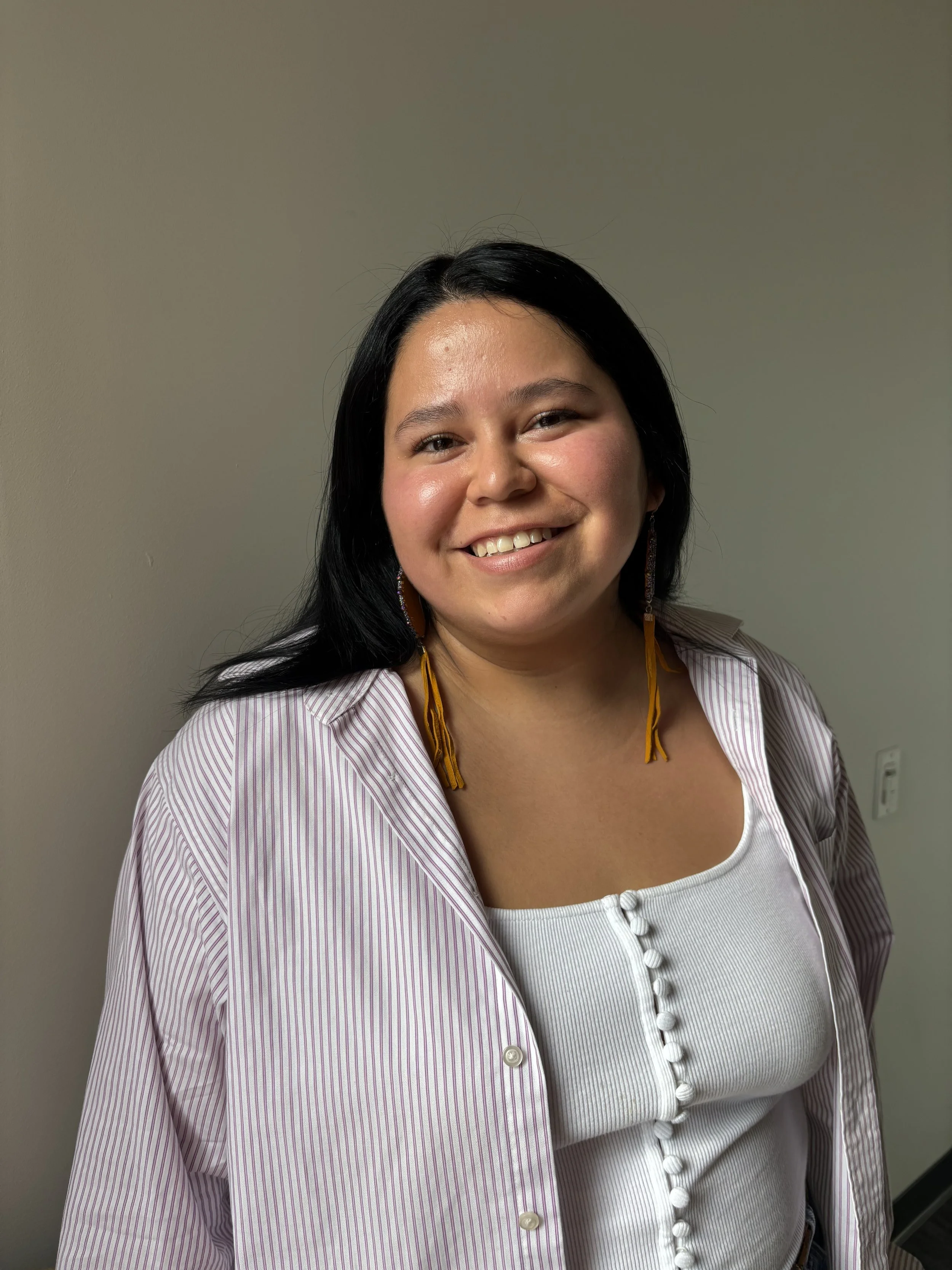 Stella Greendeer is an enrolled member of the Ho-Chunk Nation, with ancestral affiliations to the Prairie Band Potawatomi and Kaw peoples. A member of the Deer Clan, she was raised in the Driftless Region of Wisconsin. Greendeer holds an Associate of Applied Science degree in Textile and Surface Design from the Fashion Institute of Technology (2020) in New York and is currently pursuing a Bachelor of Fine Arts in Studio Arts, with a minor in Museum Studies, at the Institute of American Indian Arts in New Mexico.